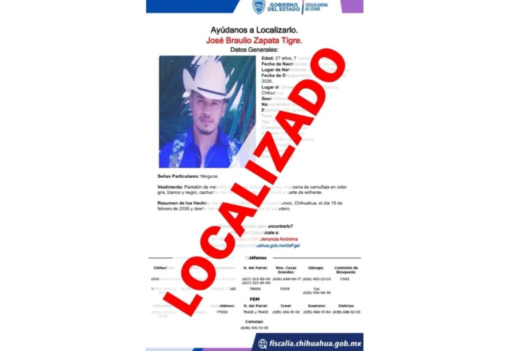 CHIHUAHUA – La Fiscalía General del Estado (FGE) informó sobre la localización, sano y salvo, de un hombre que contaba […]