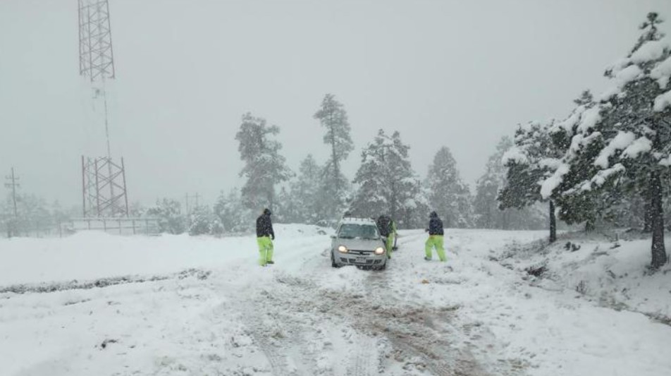 De acuerdo con la dependencia, en el punto afectado se detectó una capa de nieve de aproximadamente 10 centímetros, lo que generó condiciones de riesgo para la circulación vehicular y obligó a suspender el tránsito como medida preventiva.