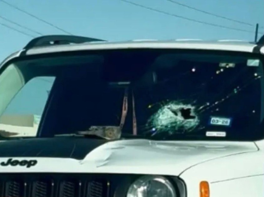 El objeto fue descrito como un hachazo, el cual impactó el cristal frontal y provocó lesiones severas a la mujer.