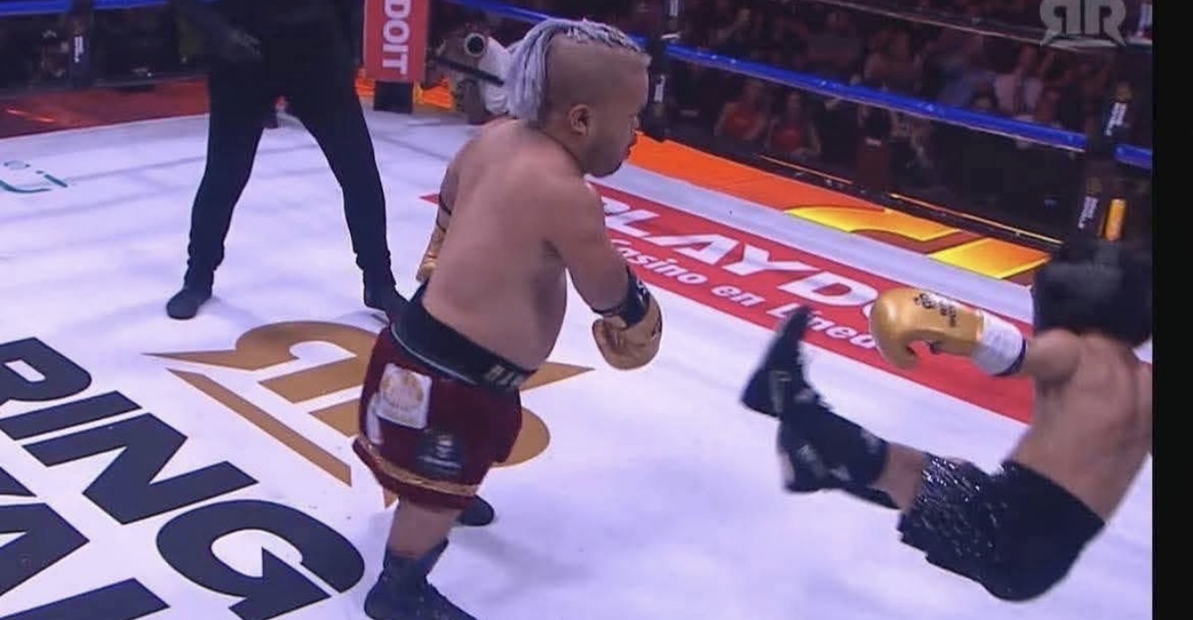 En el segundo round, Abelito intentó reaccionar y lanzó varios golpes que incluso llevaron a su rival, identificado también como Moisés Rodríguez, a la lona.