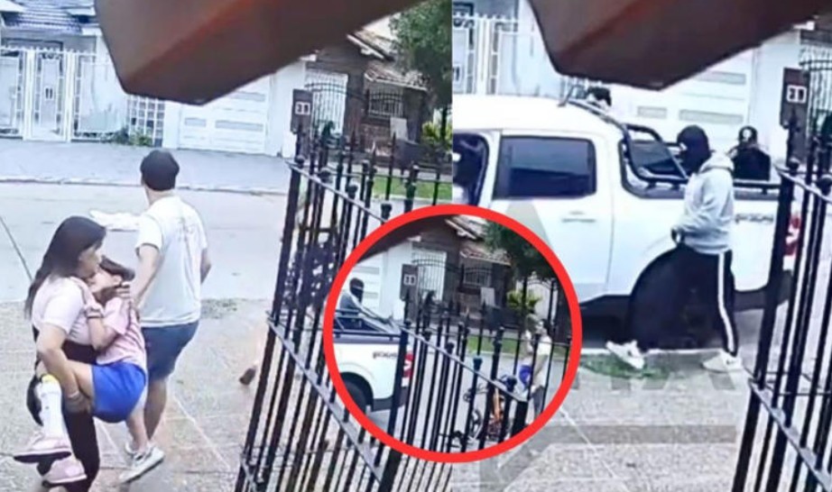 Argentina.– Un violento asalto contra una familia que regresaba a su casa junto a una niña en silla de ruedas ha generado indignación en redes sociales luego de que las cámaras de seguridad captaran el momento del ataque.