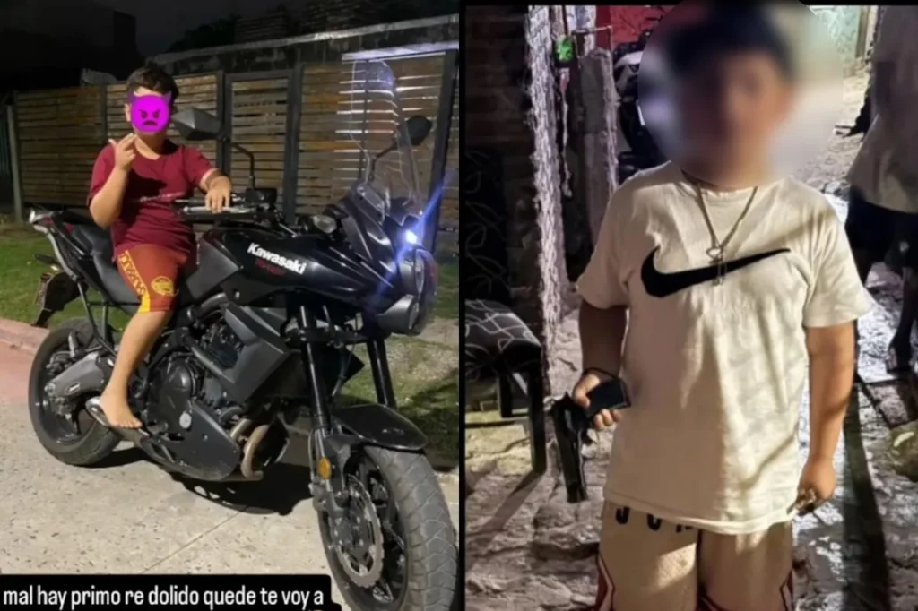 En algunas publicaciones se observa al menor posando con armas y motocicletas, imágenes que circularon ampliamente y avivaron la discusión pública.