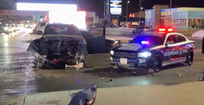 Ciudad Juárez.– Un fuerte accidente vial se registró la tarde de este domingo en el cruce de la avenida Teófilo Borunda y Paseo de la Victoria, donde se vieron involucradas dos camionetas, una Envoy color guinda y otra de color gris, lo que generó una rápida movilización de cuerpos de emergencia.