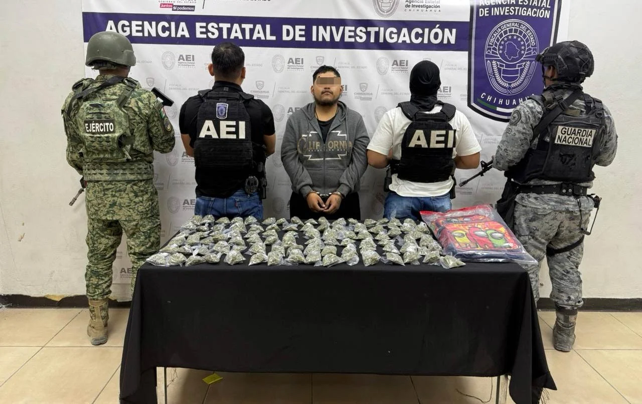 Ciudad Juárez, Chihuahua.– Como parte de un operativo coordinado entre corporaciones estatales y federales, un joven de 22 años fue detenido en posesión de 92 envoltorios de droga en el ejido Parcelas Jesús Carranza, al suroriente de la ciudad.