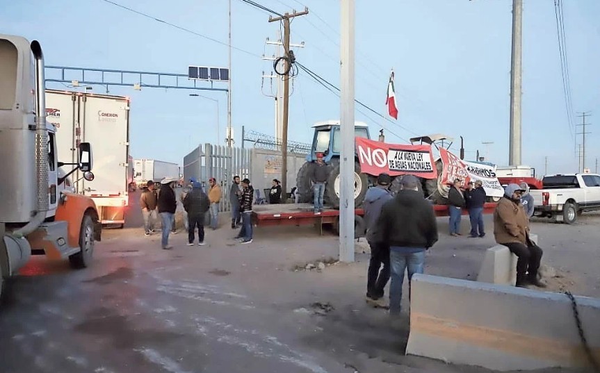 Los bloqueos realizados por productores agrícolas en protesta contra la nueva Ley General de Aguas mantienen cerrados cinco de los seis cruces internacionales en el estado, mientras que en la región sur las manifestaciones se han suavizado con la apertura parcial de algunos puntos carreteros.