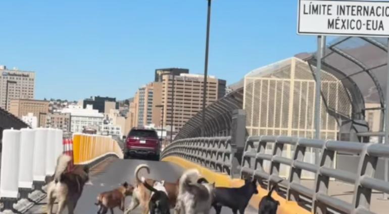 Ciudad Juárez.– Conductores que esperaban turno en la línea Sentri del puente internacional Stanton vivieron una escena inusual este sábado, cuando una jauría de al menos siete perritos fue captada cruzando tranquilamente entre los vehículos con dirección a El Paso, Texas.