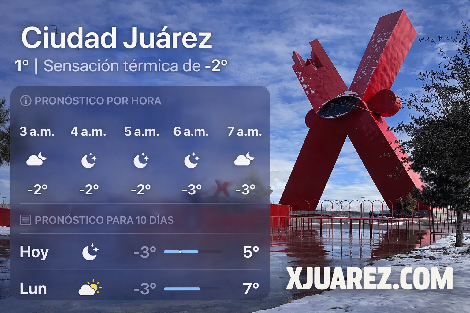 Ciudad Juárez.– La frontera amaneció este lunes con un intenso fríazo, al registrarse una temperatura de -3 grados centígrados, con sensación térmica de hasta -4 grados, de acuerdo con reportes meteorológicos.