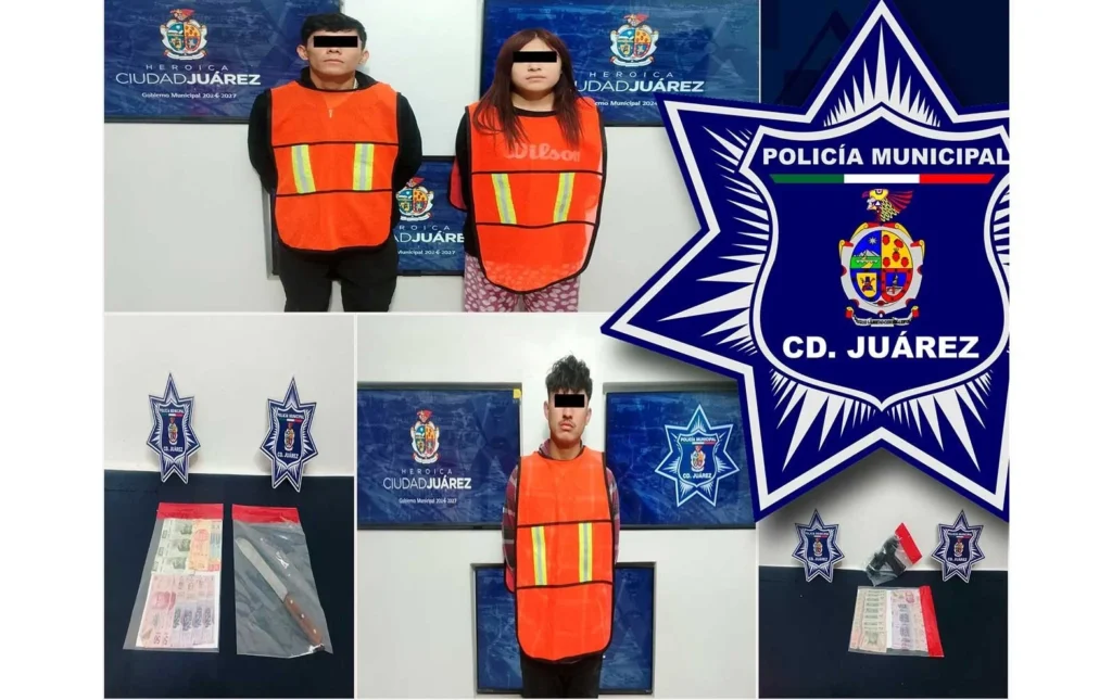 Ciudad Juárez.– Tres presuntos asaltantes, dos hombres y una mujer, fueron arrestados por elementos de la Secretaría de Seguridad Pública Municipal (SSPM) en hechos distintos registrados el viernes, informó el vocero de la corporación, Adrián Sánchez.