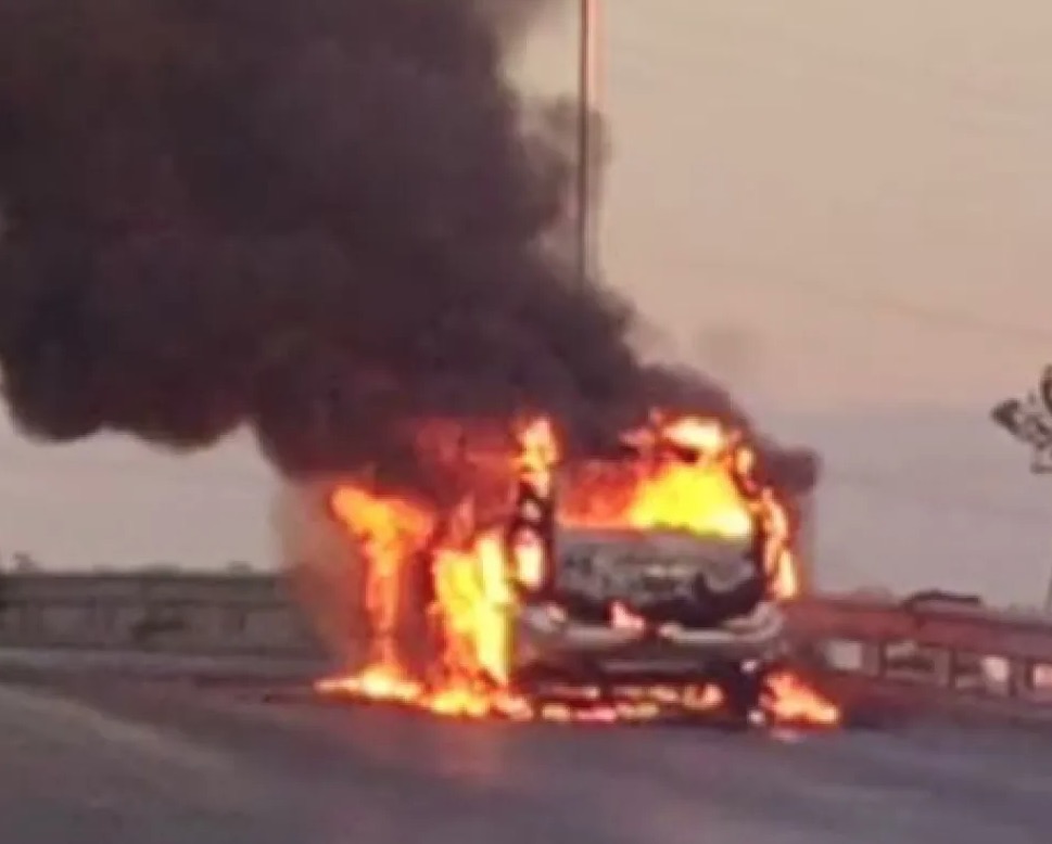 De acuerdo con testigos, el vehículo venía tirando gasolina de manera constante, dejando un rastro en el pavimento hasta que finalmente comenzó a incendiarse en plena circulación.
