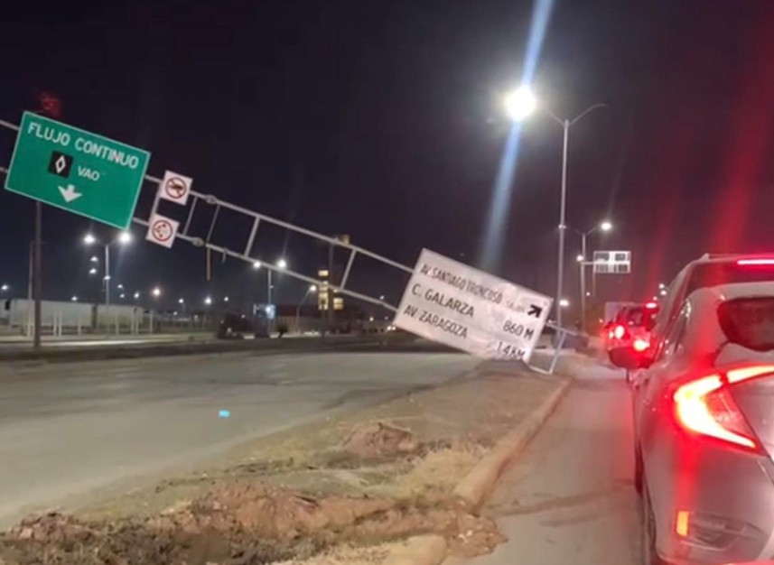 Ciudad Juárez.– La mañana de este lunes se registró un fuerte caos vial sobre la avenida de las Torres, casi a la altura de la Santiago Troncoso, luego de que autoridades retiraran una señalización de flujo continuo que se encontraba en riesgo de caer, lo que obligó al cierre parcial de la vialidad.