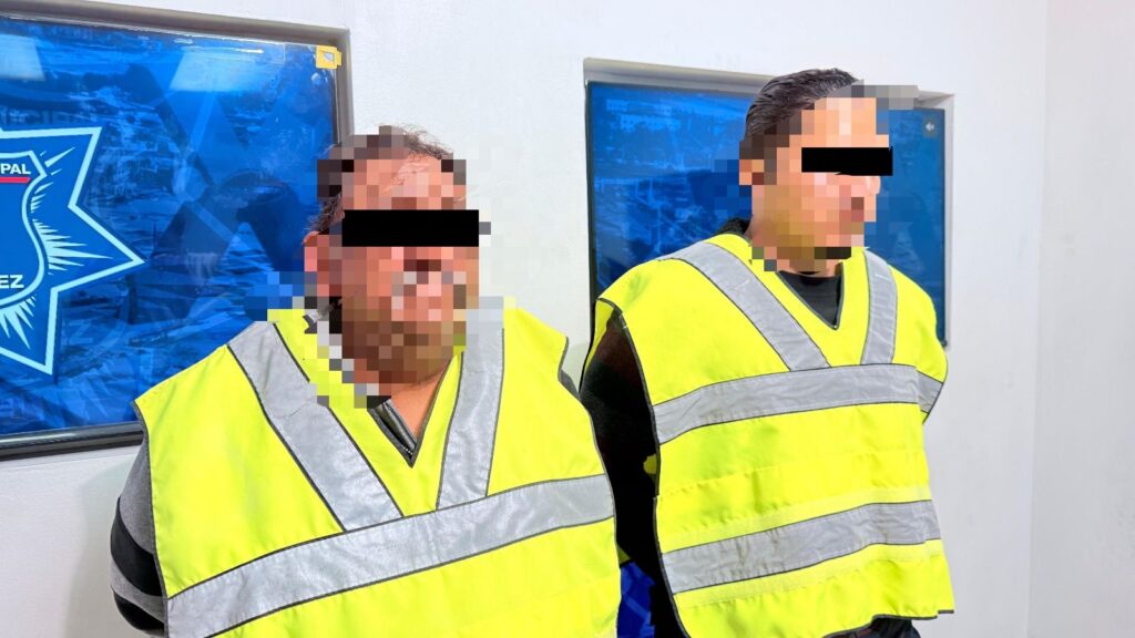Ciudad Juárez.– Dos hombres fueron detenidos por elementos de la Policía Municipal luego de ser sorprendidos saliendo de una oficina que presentaba daños y signos de haber sido forzada, en el cruce de la avenida Teófilo Borunda y la avenida Tecnológico, en la colonia Las Acequias.