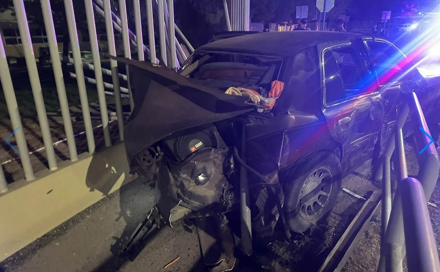 El choque también provocó daños en un pequeño muro metálico de protección ubicado en el perímetro del campus.