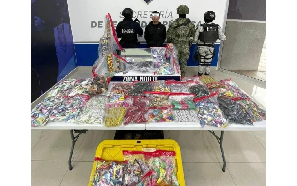 Ciudad Juárez. — En el marco de los operativos de seguridad decembrinos, elementos de la Secretaría de Seguridad Pública del Estado (SSPE) lograron el aseguramiento de un cargamento ilegal de pirotecnia y la detención de un hombre que lo transportaba por las calles del centro de la ciudad.
