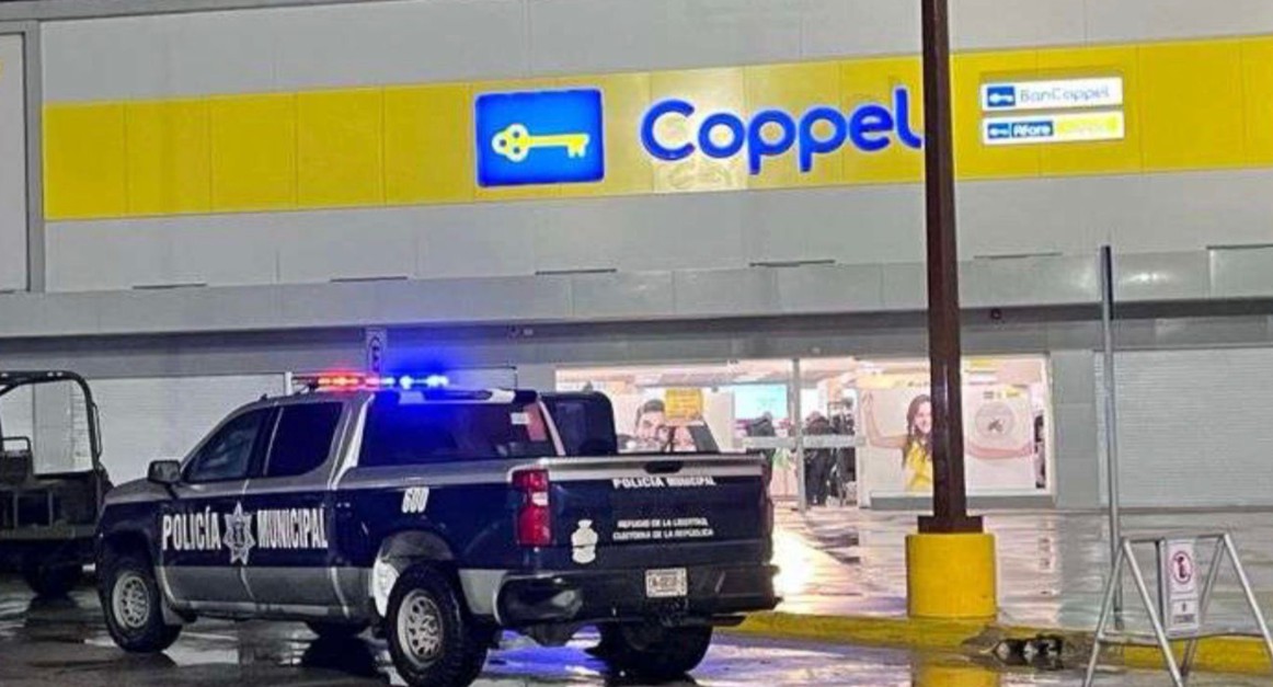 Ciudad Juárez.– Un asalto con arma de fuego se registró en la tienda Coppel ubicada en el cruce de Boulevard Zaragoza y Avenida Tecnológico, donde dos hombres armados ingresaron al establecimiento y realizaron detonaciones para consumar el robo de equipos de telefonía celular.