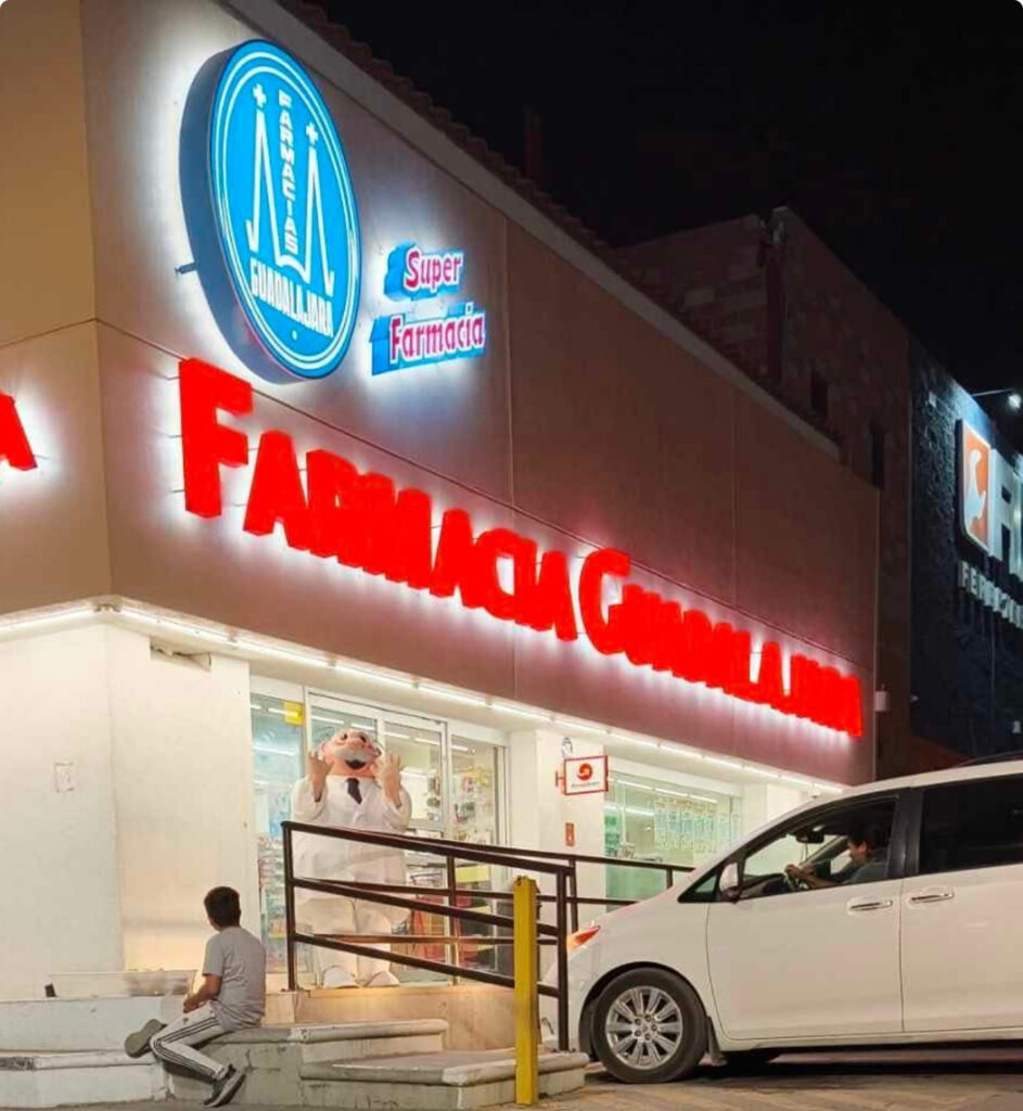 Ciudad Juárez.– Una simple fotografía del Dr. Simi parado frente a una Farmacia Guadalajara en Ciudad Juárez se volvió viral en redes sociales, luego de que usuarios compartieran la imagen con todo tipo de bromas y comentarios.
