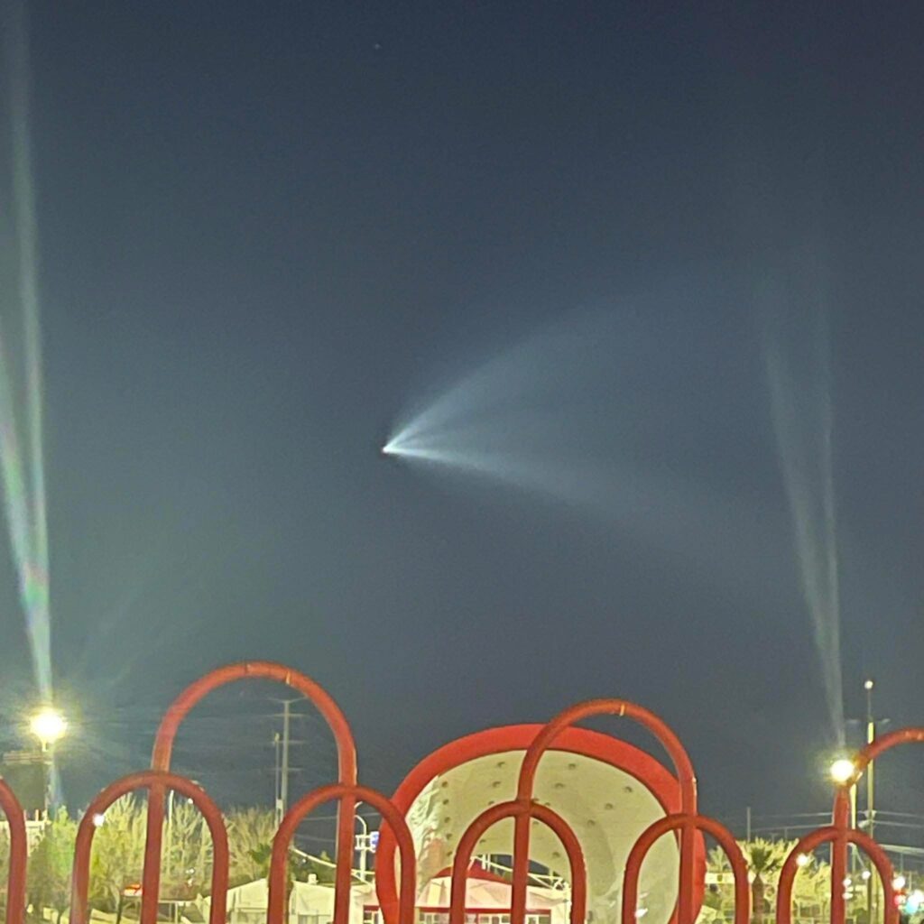 Ciudad Juárez.– La noche de este jueves, habitantes de distintos puntos del norte del país reportaron el avistamiento de un cohete de SpaceX, el cual fue visible en el cielo y generó sorpresa entre automovilistas y familias que lograron observarlo a simple vista.