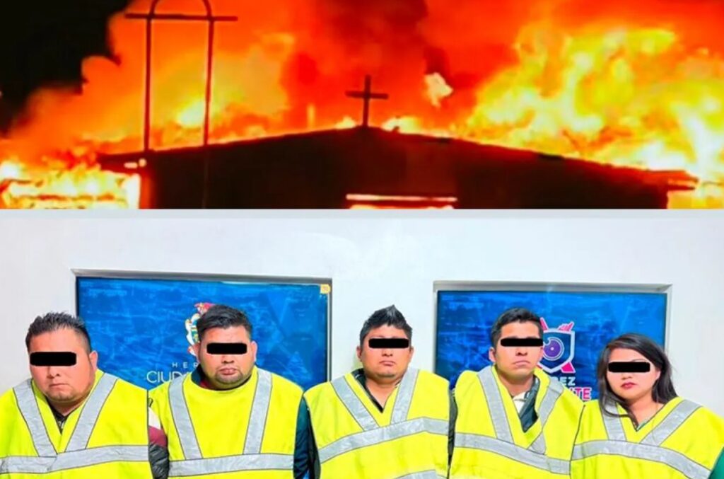 CIUDAD JUÁREZ, CHIHUAHUA.– Elementos de la Secretaría de Seguridad Pública Municipal (SSPM) detuvieron a cinco personas por su presunta responsabilidad en el delito de desobediencia y resistencia de particulares, luego de que intentaran ingresar a una iglesia que se encontraba en llamas en la colonia Parajes de San José.