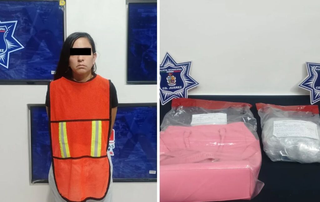 Ciudad Juárez.– Elementos de la Secretaría de Seguridad Pública Municipal (SSPM) detuvieron a Saraí E. T., de 33 años, señalada por su presunta responsabilidad en delitos contra la salud, luego de que se le asegurara una bolsa con marihuana con un peso aproximado de casi una libra.
