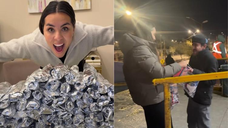 La creadora de contenido llevó alimentos a familias con pacientes internados en los hospitales 35 y 66; entregó paquetes con burrito, refresco y botana.