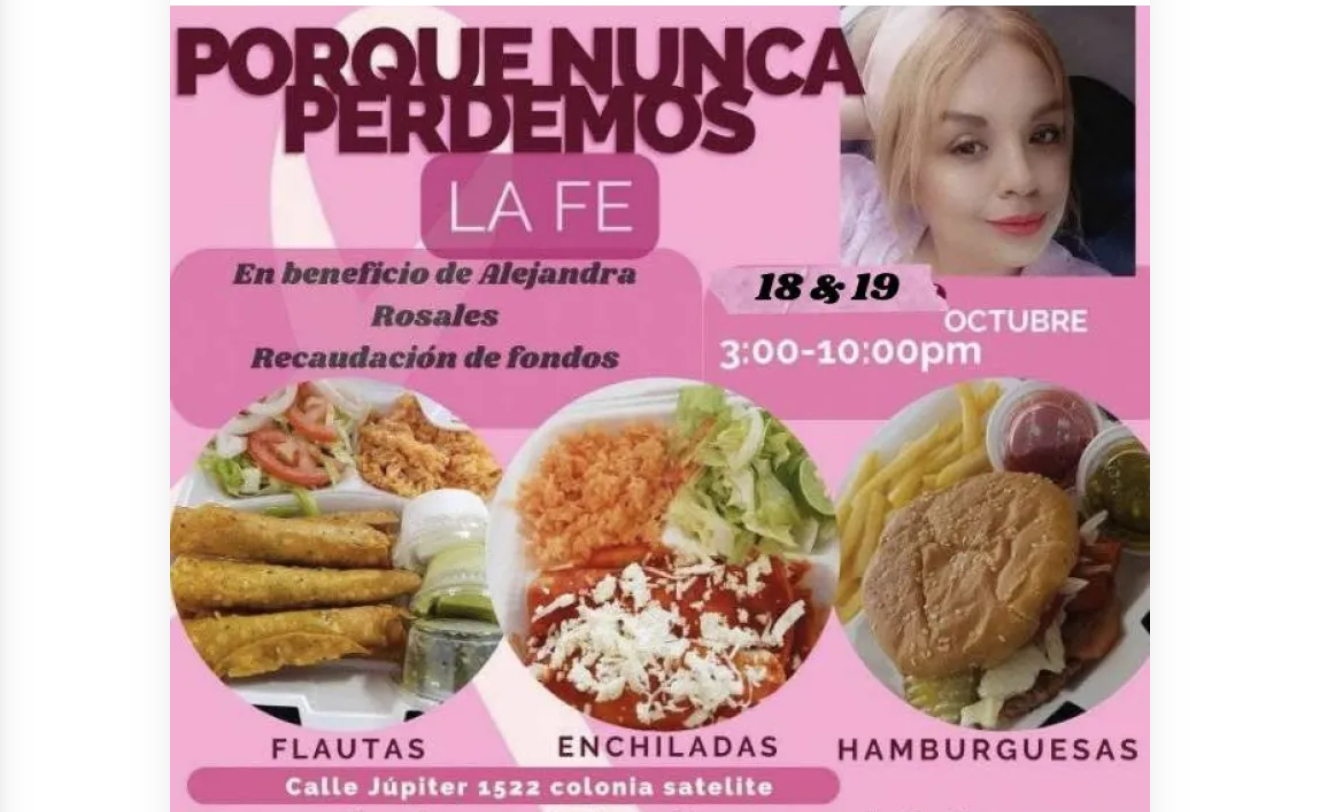 Se ofrecerán flautas, enchiladas y hamburguesas, y todo lo recaudado será destinado a los gastos médicos y de recuperación de Alejandra.