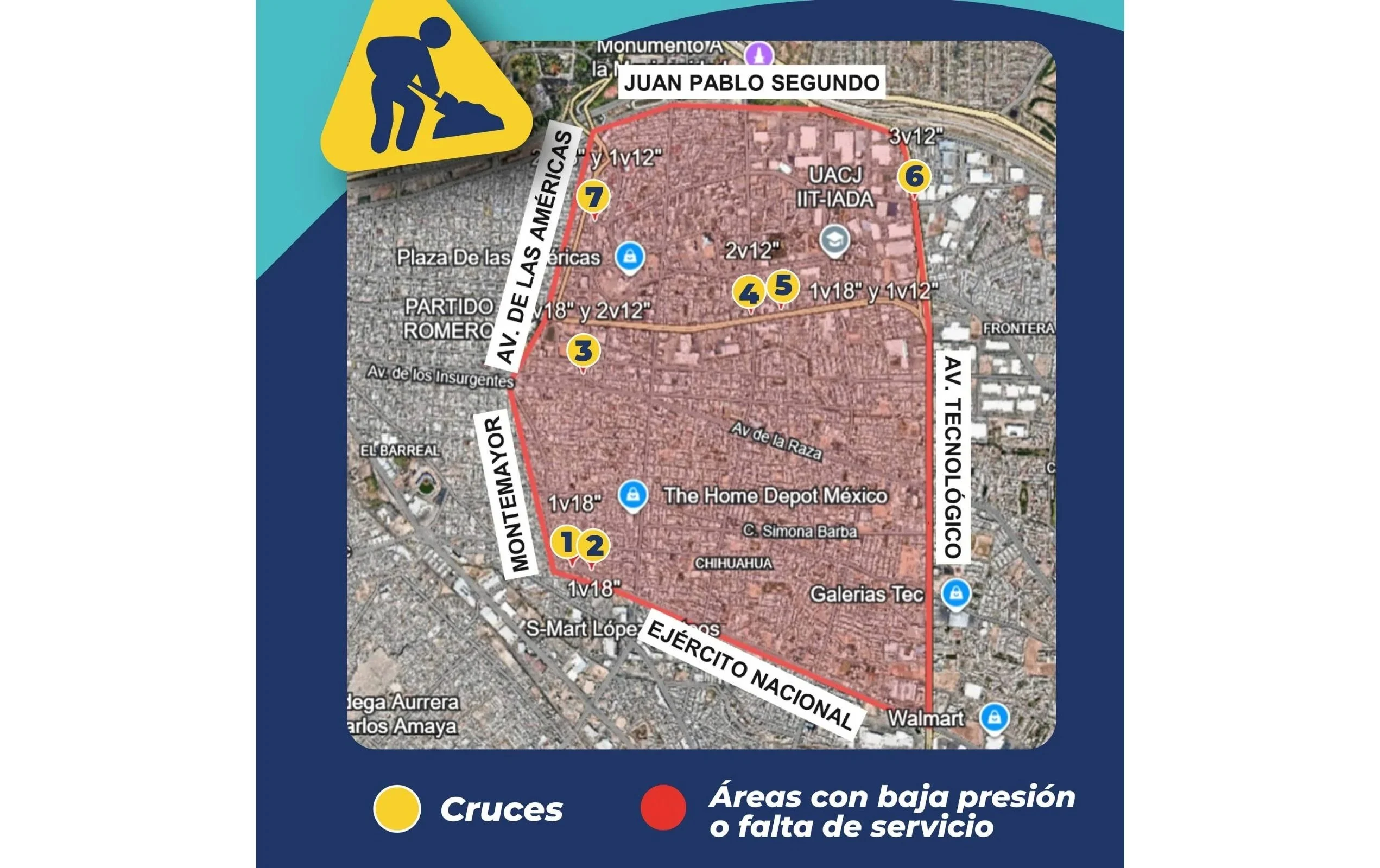 Ciudad Juárez.– Más de 12 horas han pasado desde que la Junta Municipal de Agua y Saneamiento (JMAS) inició un corte general para sustituir 15 válvulas en distintos sectores de la ciudad, y varias zonas continúan sin servicio, entre ellas una de las áreas más concurridas: la zona Pronaf.