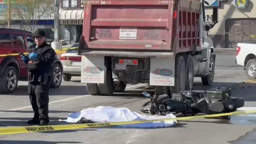 Ciudad Juárez.– Un motociclista perdió la vida la mañana de este lunes tras sufrir un aparatoso accidente vial en la colonia El Granjero, donde, luego de derrapar, fue arrollado por un camión de volteo que circulaba por la zona.