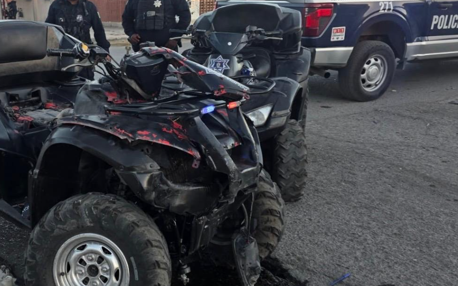 Ciudad Juárez.– Un agente de la Policía Municipal resultó gravemente lesionado esta tarde luego de protagonizar un accidente vial mientras circulaba en una cuatrimoto oficial en la colonia El Colegio. El impacto lo dejó inconsciente sobre el pavimento y fue trasladado de emergencia al Hospital General, donde su estado de salud se reporta como grave.