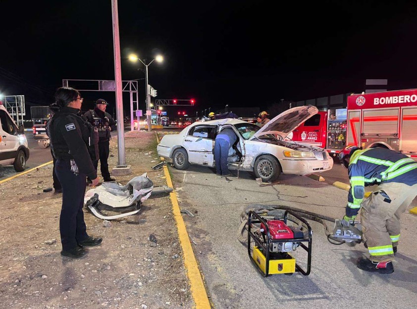 CIUDAD JUÁREZ, CHIHUAHUA.– Un accidente vial registrado en el cruce de Barranco Azul y la carretera Panamericana dejó como saldo dos menores y una mujer lesionados, luego de que el conductor de una pickup presuntamente omitiera el alto reglamentario.