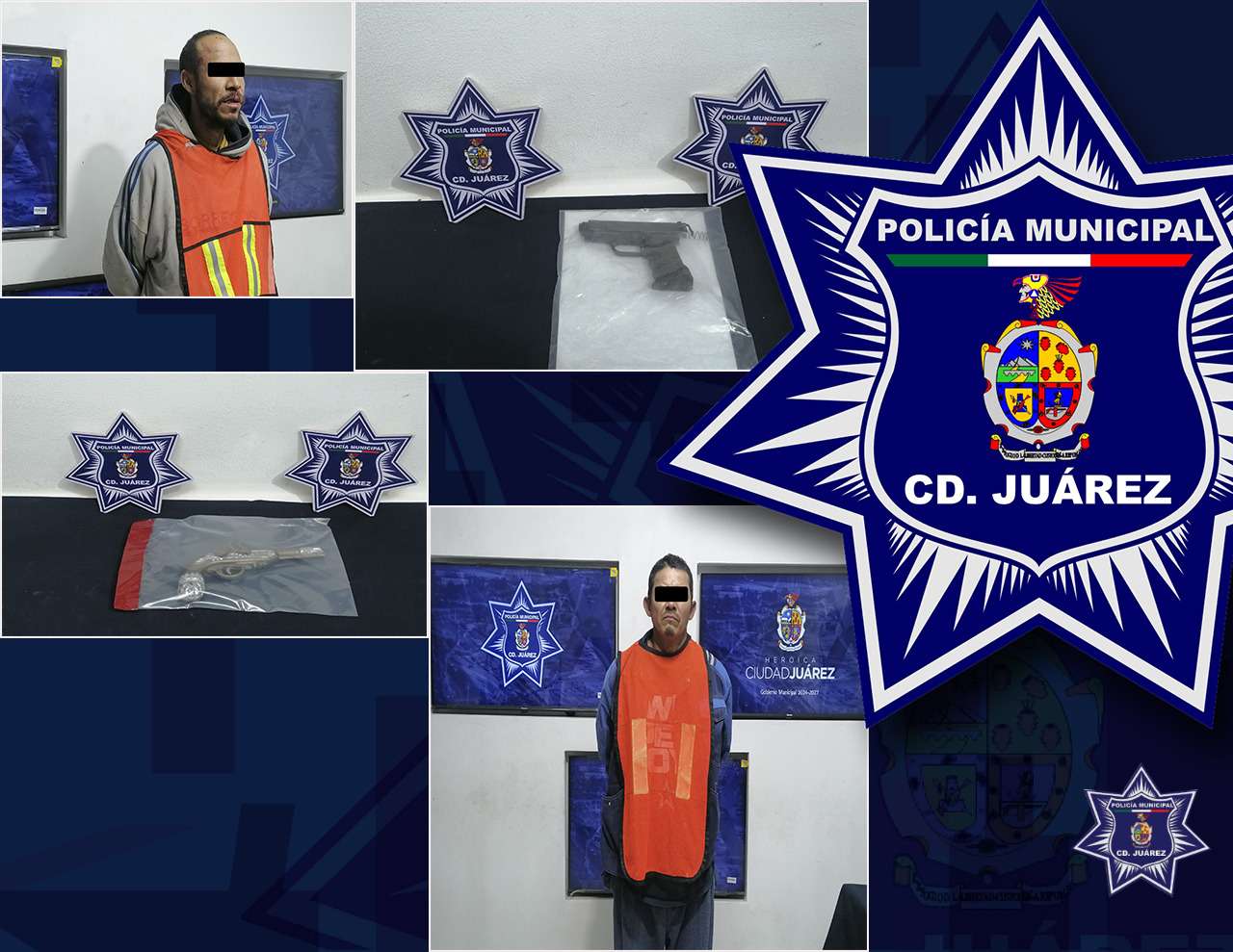 Ciudad Juárez. — Creerse delincuentes usando armas de utilería les costó la libertad a dos hombres este domingo. Elementos de la Policía Municipal arrestaron a dos sujetos en hechos distintos, acusados de amenazas de muerte tras apuntar a ciudadanos con lo que parecían ser armas de fuego reales.