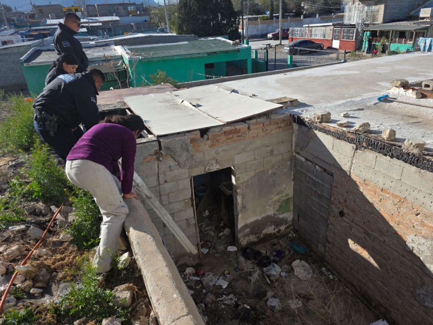 Ciudad Juárez, Chihuahua.– Elementos de la Secretaría de Seguridad Pública Municipal rescataron a un perro que quedó atrapado al interior de una vivienda en condición de tapia, luego de que presuntamente resbalara del techo y no pudiera salir del inmueble.