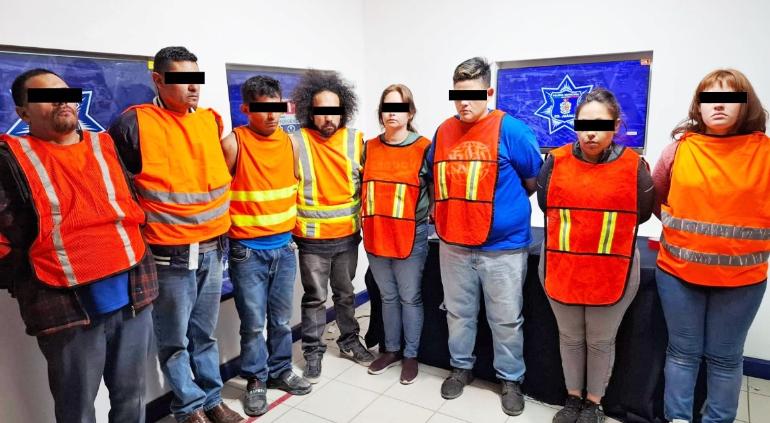 Las personas detenidas fueron identificadas como Miguel Alberto M. M., de 43 años; José Francisco A. A., de 40; Luis Fernando A. A., de 28; Manuel Abraham V. G., de 32; Ana Cristina G. G., de 35; Berenice C. S., de 27; Luisa Alejandra A. H., de 38; Yulianna Gabriela C., de 18 años; y un adolescente de 17 años.