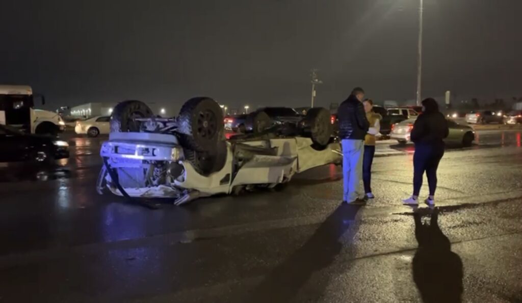 Al descender del puente ubicado a la altura de Talamás Camandari, el conductor perdió el control de la unidad, lo que provocó que brincara el camellón central, volcara y terminara impactando a un Ford Mustang y un Chevrolet Cavalier que transitaban por la vialidad lateral.