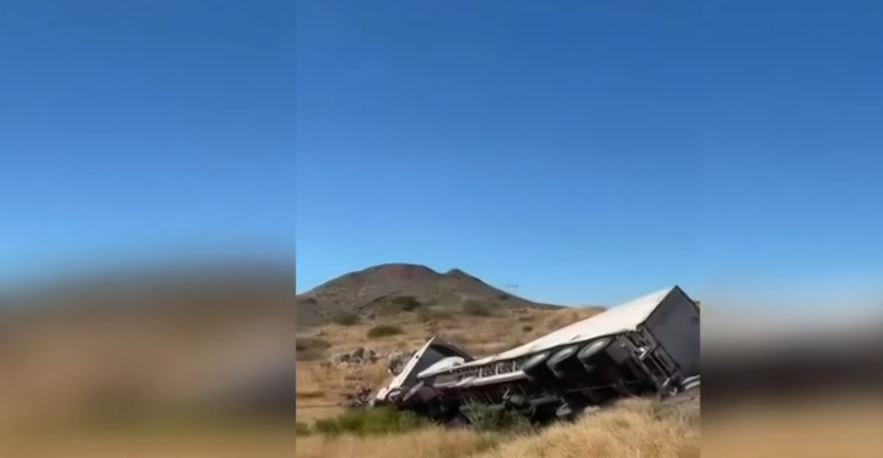 De acuerdo con los primeros reportes, el percance involucró un tractocamión Kenworth blanco, cargado con láminas de acero con destino a Ciudad Juárez.