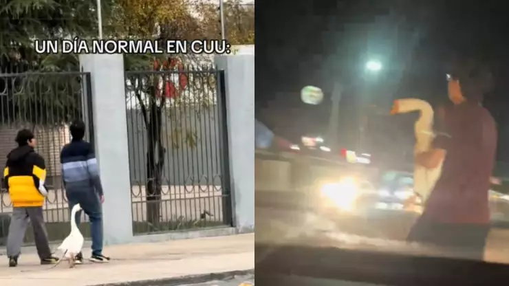 El momento fue difundido principalmente a través de TikTok, donde varios usuarios compartieron un video de apenas siete segundos en el que se observa al ganso caminando detrás de dos jóvenes sobre la banqueta.