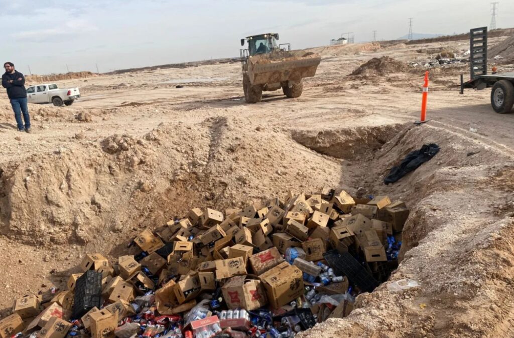 Las bebidas decomisadas fueron llevadas a un área especial del relleno sanitario, donde se realizó su destrucción conforme a un protocolo supervisado por la Secretaría de la Función Pública.