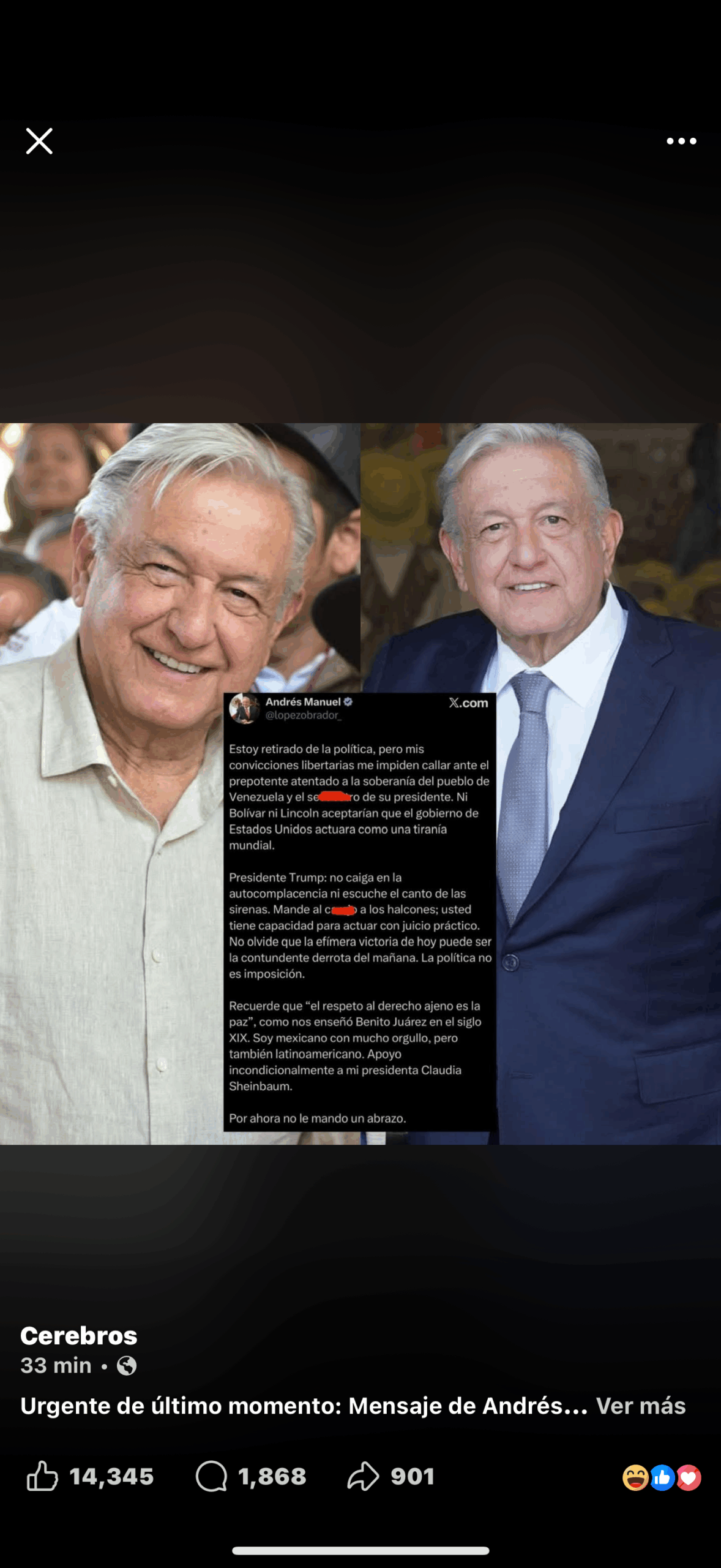 El pronunciamiento de López Obrador se da en un contexto de alta tensión internacional, tras los recientes acontecimientos en Venezuela, y ya genera debate tanto en México como en América Latina, donde distintos actores políticos han exigido respeto a la soberanía y a los mecanismos diplomáticos.
