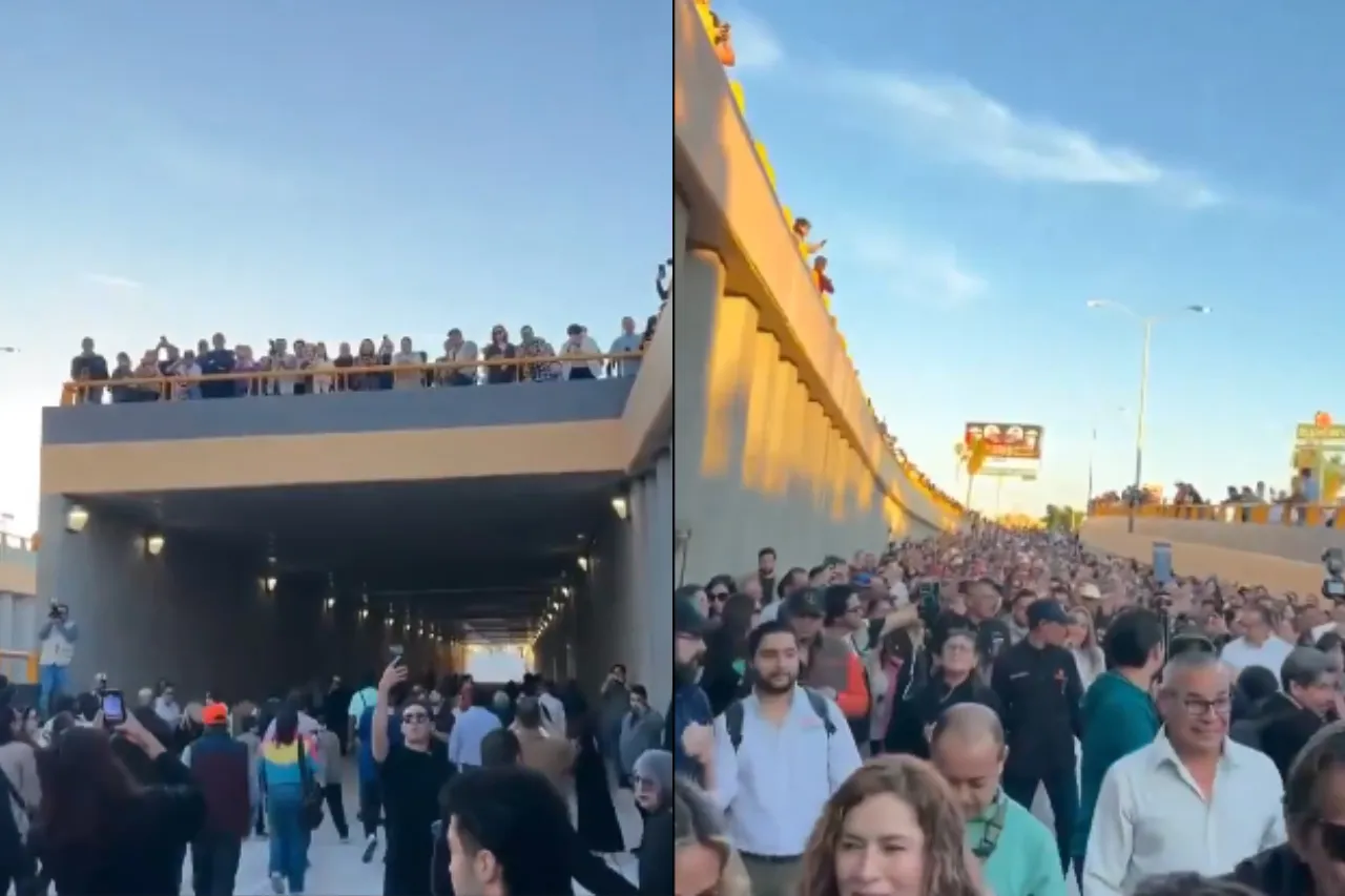 La apertura del túnel en el cruce Colosio–Solidaridad se volvió viral por el entusiasmo desbordado de asistentes y reporteros