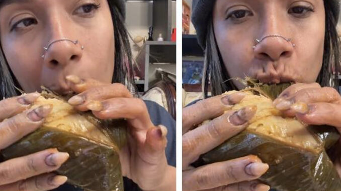 Ciudad de México.–Una influencer generó una ola de reacciones en redes sociales luego de publicar un video en el que aparece comiendo un tamal guatemalteco con todo y la hoja, sin retirar la envoltura tradicional hecha de hoja de maxán, la cual no es comestible y solo se utiliza durante la cocción.