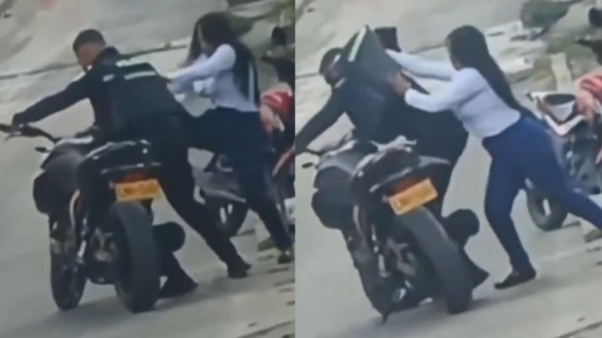 En las imágenes, captadas por testigos, se observa a una mujer de cabello largo negro, vestida con blusa blanca y pantalón de mezclilla, golpear al uniformado con manotazos, empujones y patadas, además de intentar tirarlo de la motocicleta en la que se encontraba.