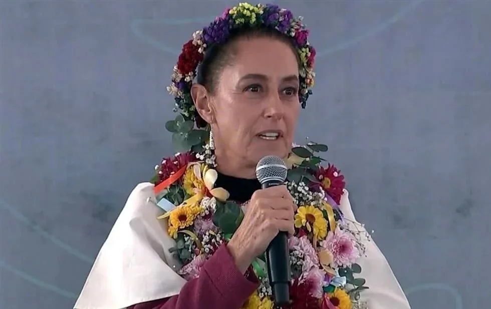 La presidenta fue recibida con una ceremonia tradicional en la que se hincó durante una limpia con humo de copal, velas y hojas silvestres, acompañada de bendiciones de autoridades indígenas y comunitarias. El evento se realizó sin la presencia de los gobernadores panistas del estado.
