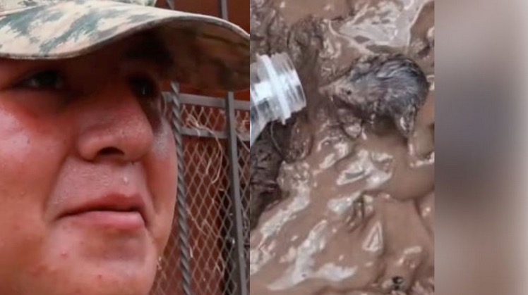 Militar mexicano salva a un ratón del lodo en Poza Rica y conmueve a todo México