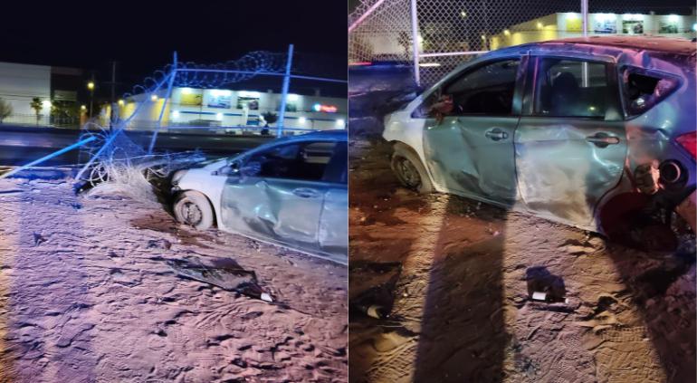 Las autoridades informaron que no hubo personas lesionadas, y que el incidente dejó únicamente daños materiales, tanto en el automóvil como en la malla ciclónica de la maquiladora.