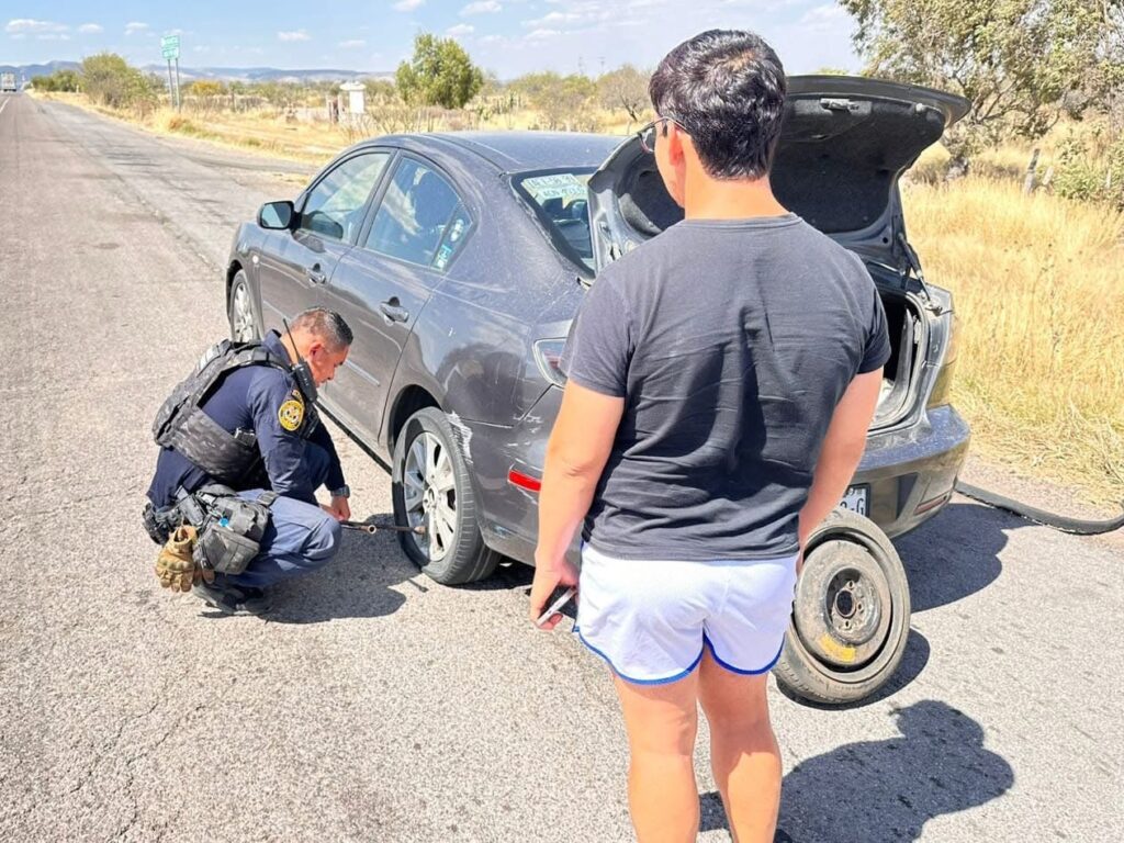 El hecho ocurrió durante recorridos de vigilancia en la autopista que conecta Aguascalientes con Zacatecas, a la altura del kilómetro 60, donde elementos de la Policía Estatal Preventiva y Policía Municipal auxiliaron a un conductor cuyo vehículo presentó una avería.