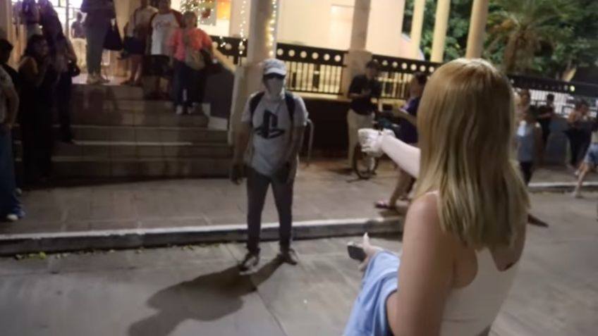Lady Therian Mérida, agresión reunión therian Yucatán, Monumento a la Patria riña, mujer lanza huevos reunión Mérida, policía detiene Lady Therian.