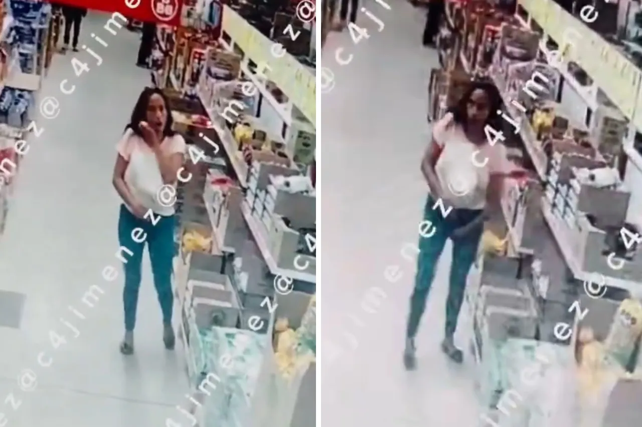El video, difundido por el periodista Carlos Jiménez, muestra a la mujer —vestida con pantalón azul y blusa blanca— caminando por el pasillo de abarrotes, eligiendo un huevo del paquete y pasándolo por distintas partes de su cuerpo durante cerca de 20 segundos.