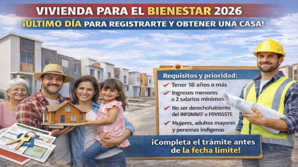 CIUDAD MÉXICO. — Si estás buscando adquirir un patrimonio a través de los programas federales, es momento de apresurar el paso. El Gobierno de México ha confirmado la fecha límite para completar el registro en el programa Vivienda para el Bienestar 2026, una iniciativa que busca facilitar el acceso a un hogar digno para miles de familias.