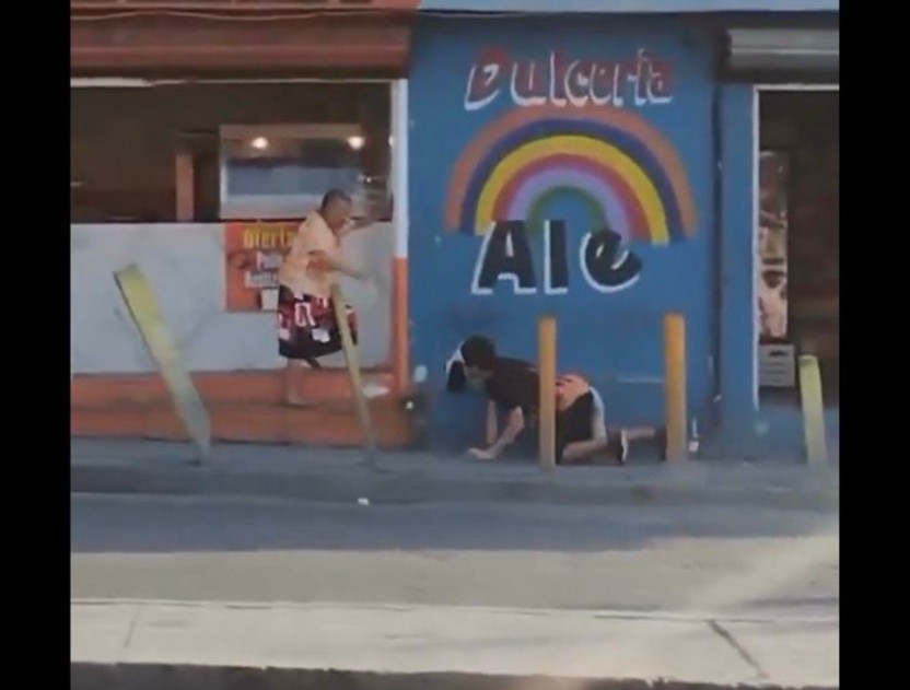 La escena no pasó desapercibida para una mujer que se encontraba en un negocio cercano. Al notar la situación, salió del establecimiento con un recipiente con agua y se la arrojó directamente.