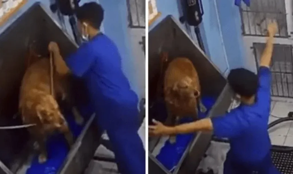 Un joven trabajador se volvió viral tras protagonizar un tierno momento con un lomito mientras lo bañaba; usuarios aplauden su amor por los animales.