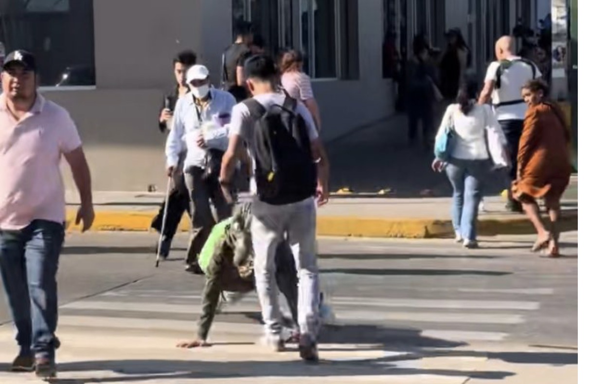 El joven se arrastraba por una avenida cuando otro transeúnte lo golpeó; el clip supera los 15 millones de reproducciones y divide opiniones en redes.