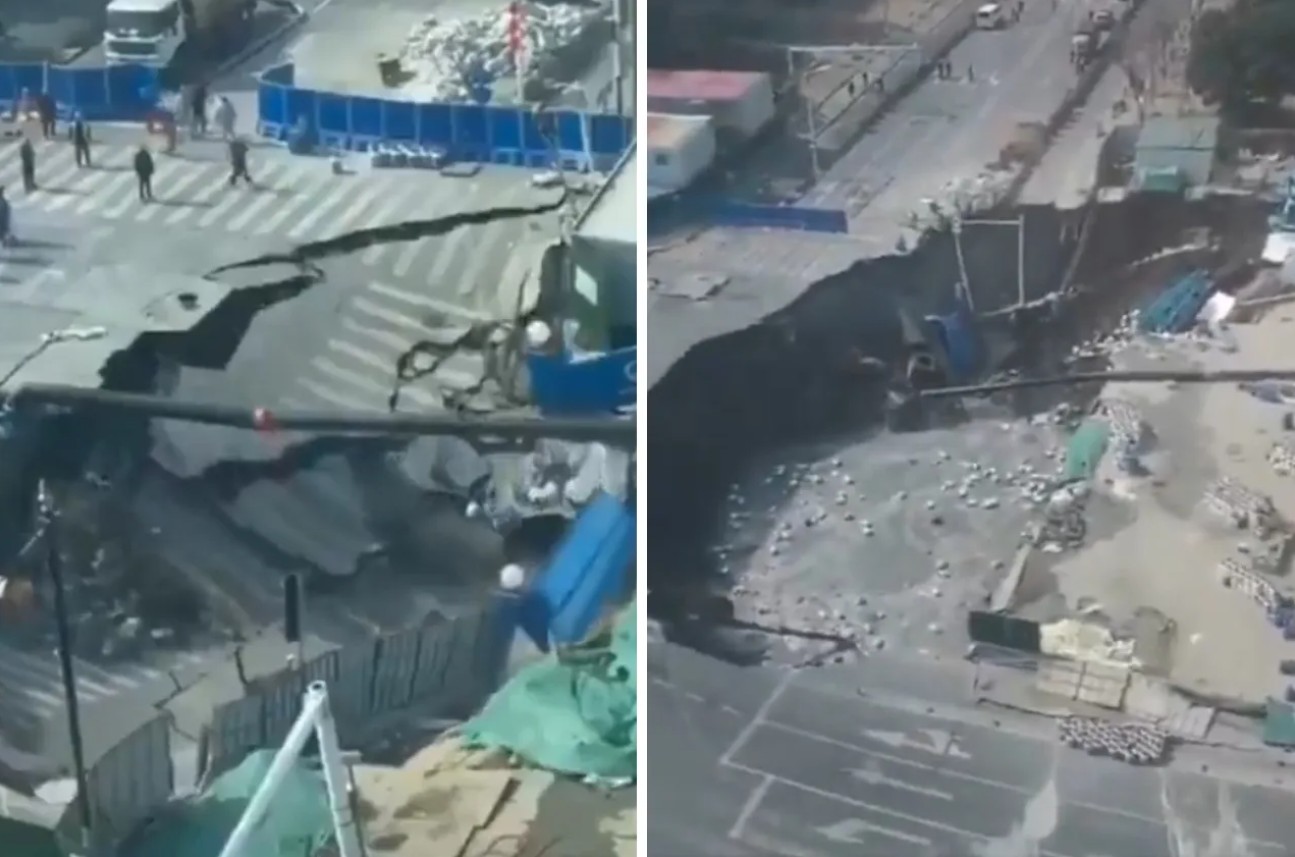 El colapso ocurrió en el cruce de Qixin Road y Li’an Road, donde el asfalto comenzó a agrietarse antes de hundirse por completo, formando un cráter de entre 10 y 20 metros de ancho.